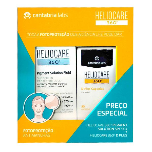- Heliocare 360º Pigment Solution Fluido é uma emulsão de alta fotoproteção especialmente indicada para pele com manchas castanhas e melasma.