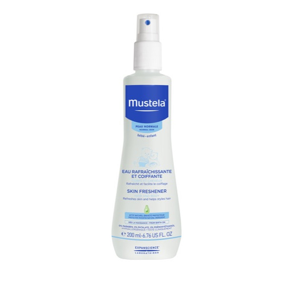 A Água Refrescante Perfumada Mustela Bebé Pele Normal deixa a pele do bebé macia. Ajuda a pentear o cabelo delicado do bebé.